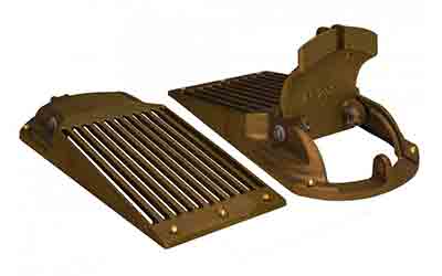 Cast bronze. Access to thru hull fitting and/or seacock is made easy with Groco’s patented perforated access door design. Eliminates the need to remove strainer for cleaning etc.