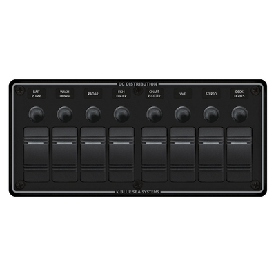 Blue Sea 8Pos Hrznt W/P Brkr Panel 8371 .37 in. x 4.25 in.