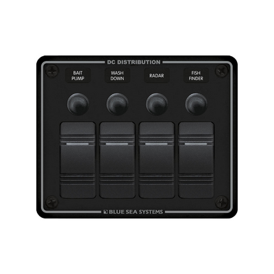 Blue Sea 4Pos Hrznt W/P Brkr Panel 8372 .25 in. x 4.25 in.