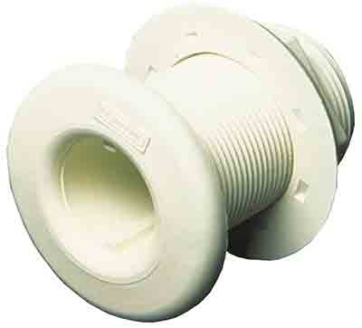 Precision molded in high strength glass-reinforced white Marelon®. Their great strength, light weight and complete freedom from corrosion and electrolysis make them the ideal thru-hull connector for use above or below the waterline. All thru-hull connectors must be installed with proper bedding compound.