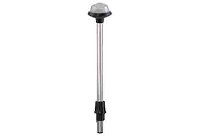 Replacement for all All-Round lights. Certified for use on power driven vessels under 65.6 ft. in length. Fits Perko style vertical bases #1045 or #1047. Fits Perko style bases with 0º rake angle. Clear fluted lens with black plastic top. 3/4″ diameter anodize aluminum tube with locking collar. Bases not included. 12V bulb included.