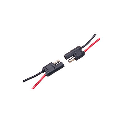 2-Wire Polarized Electrical Connector is an SAE type, two-prong plug and socket connector set. Polarized to assure the proper mating of circuits, reducing the chance of accidental reverse polarity. Color coded 14-gauge 12″ lead tinned wire with bullet-type contact pins. Weather resistant connectors are vibration and strain resistant. Use of dielectric grease recommended to further protect circuit from salt spray, debris, and corrosion. Plugs constructed of injection molded PVC, 20A. 12-24 VDC.