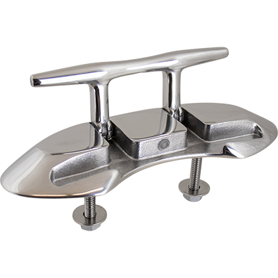 These highly polished Folding Stud Mount Cleats lock down when not in use and flip back up when it’s time to tie off. Surface mount means there are no drain tubes or receptacles required to prevent leaks. Installation is easy with two standard bit size holes drilled for the studs (no cutouts or hole saws required). The stud mounted fasteners are hidden for an attractive, flush appearance. Constructed of corrosion resistant investment cast 316 stainless steel.
