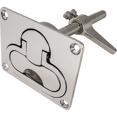 These Hatch Handle Latches feature a handle that pivots out to open hatches and lays flush when not in use for a clean appearance. Ideal for use on doors, hatches, lazarettes, and dock boxes. Adjustable locking arm adds additional security. Once installed, the locking arm can be trimmed to length. Constructed of corrosion resistant investment cast 316 stainless steel. Installs with four #8 FH fasteners (not included).