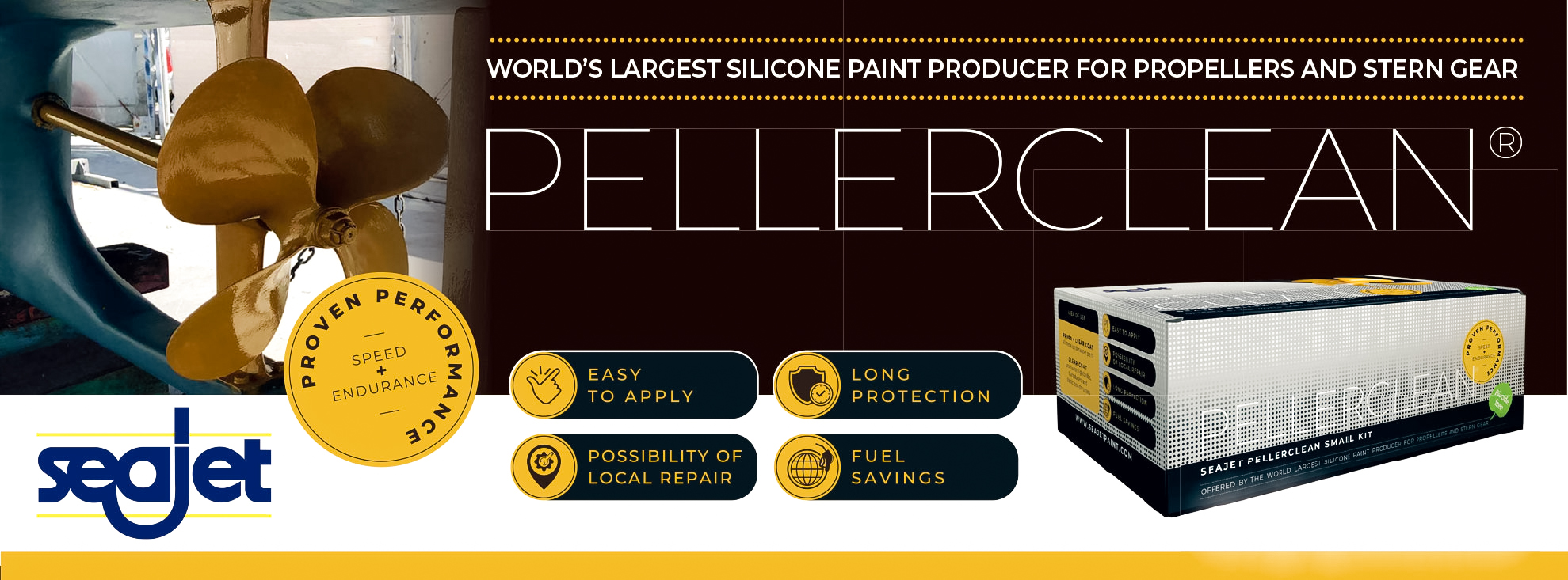 SEAJET PellerClean is a foul release silicone coating for propellers, stern gear, shafts, rudders and trim tabs. This foul release product is environmentally friendly, does not contain biocide and provides long lasting foul-release property in both fresh and saltwater environments.