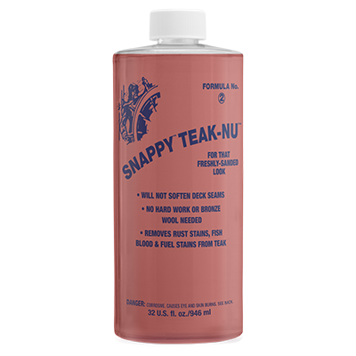 Snappy Teak-Nu is the easy two-step cleaning process that will transform your weathered teak deck to that brand new golden look without the need for expensive, time-consuming and destructive sanding. After applying the product and following the necessary steps described below, your deck will look like the day your yacht came out of the factory.